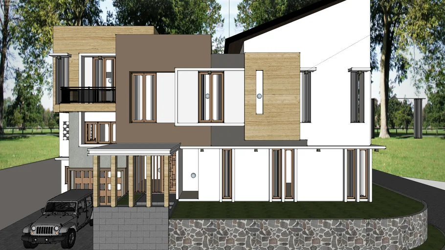 Desain garasi yang modern dan estetis, selaras dengan arsitektur mewah rumah